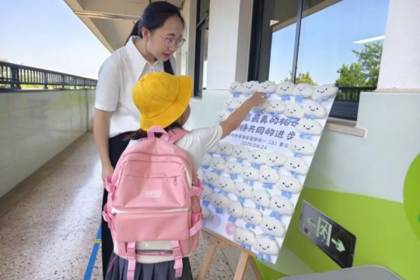 走进教室,满满的仪式感扑面而来。班主任老师们在每位小水手的额头正中点上一颗“朱砂痣”,寓意“朱砂启智”,祝愿孩子们眼明心亮,好读书、读好书。