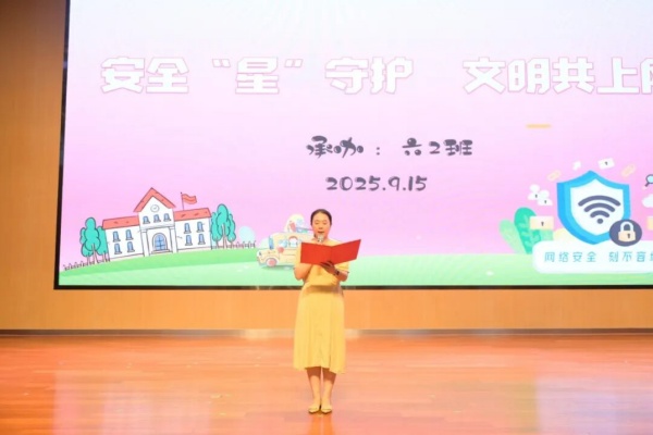 仪式中,七(3)班学长王子豪作为“星”岗位助理代表,带来网络安全知识科普。他用亲切的话语,结合“小水娃”熟悉的上网场景,以“网上遇到‘免费送玩具’是否可信”为例,通俗讲解保护个人隐私的重要性,让河海学子轻松理解网络安全要点。