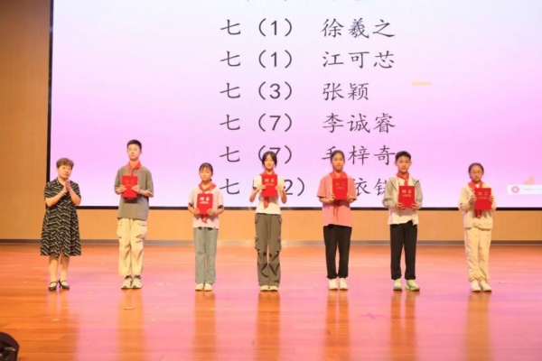 仪式现场,学生部陈部长稳步登台,宣读这份承载着无数期待的名单,全场目光聚焦,掌声为入选的初一学子响起。