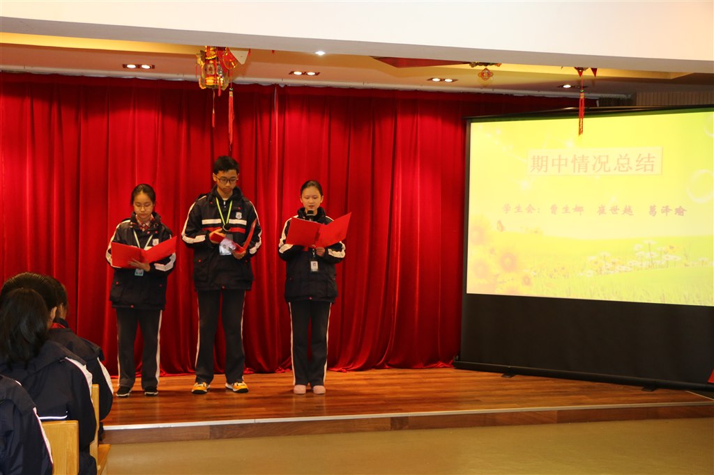 荣誉的背后也离不开学生会干部辛苦的付出。学生会主席曹生娜、生活部长葛泽瑜,文体部长崔世越同学分别就开学以来三个年级在常规管理、学习生活、体育活动等各方面的表现进行总结,对已取得的成绩给予充分肯定,同时也对各年级出现的问题提出更高的要求和期望。