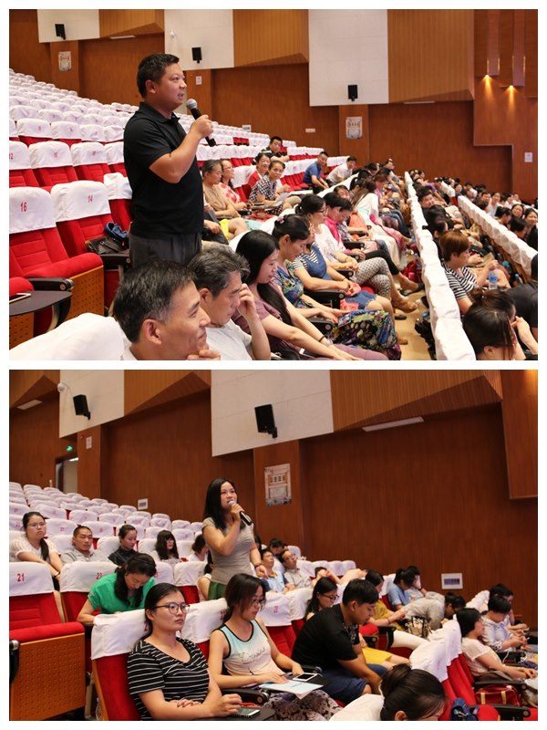 夏博士以傅园慧、马云以及诺贝尔经济学奖得主约翰·纳什所具备的素养入手,深入浅出地解读核心素养的概念、需要满足的条件,让与会教师明确认识到素养不只是知识与技能,而是在特定情境中,通过利用和调动心理社会资源、以满足复杂需要的能力。核心素养的概念是抽象的,理论性强,但夏博士通过头脑风暴,以互动的方式,频频与台下教师进行交流,不断引发与会教师的思考、提问,不断为与会教师释疑解惑。