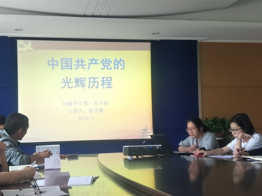 为继续推进“两学一做”教育活动的深入开展,05月03日中午,河海中学党支部开展“微党课”学习活动。本次“微党课”学习活动的主题是“中国共产党的光辉历程”,由第一党小组组长张学敏同志主讲。