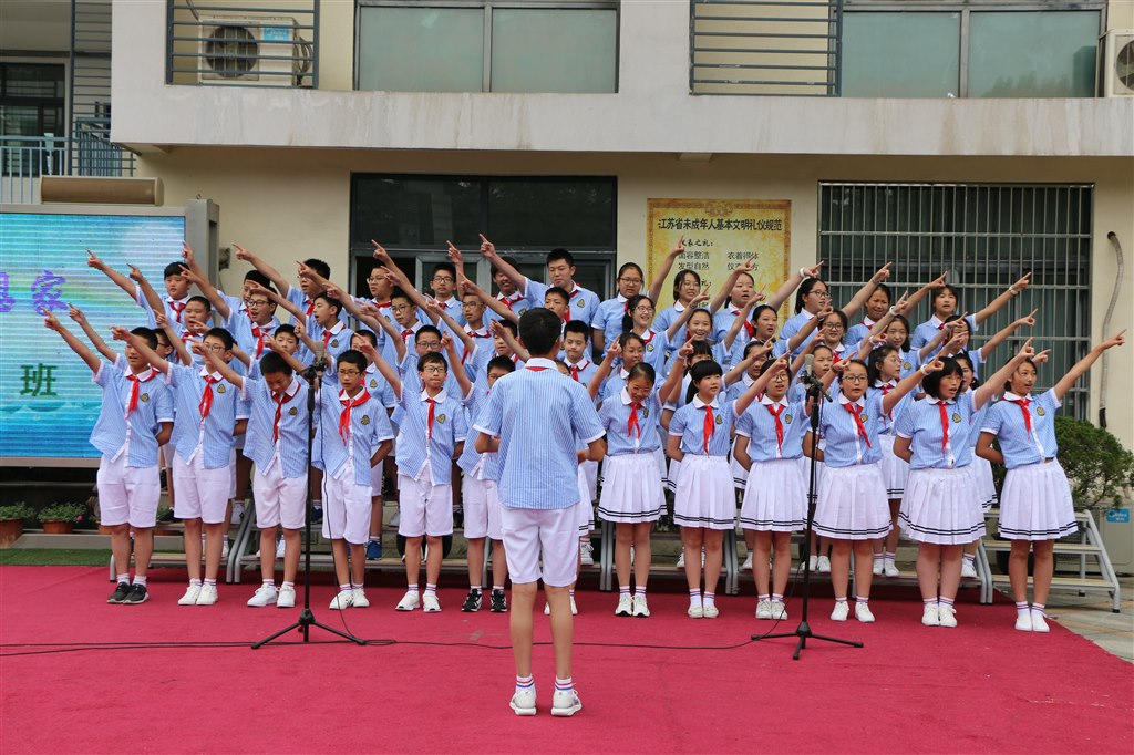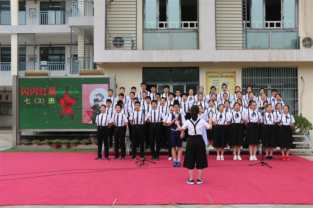 当动人的旋律在这里响起,当明媚的笑容在此刻绽放,让我们一起为青春歌唱。为了给七年级全体学生的少先队生活画上圆满的句号,激励队员迈好青春第一步,05月31日下午,河海中学举行了“告别童年·梦想起航”班歌比赛暨“六一”离队仪式。