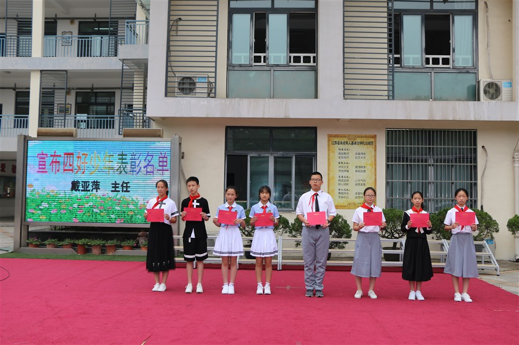 青春为证,我们不断进取。动听的不只是声音,更是希望的种子萌芽的喜悦。接着,教导处戴亚萍主任宣读校四好少年表彰决定;七年级年级组长陈莉老师宣读离队名单;姚婧晔老师赠离队寄语。整个仪式过程中,同学们庄严肃穆,精神饱满,用年轻的张扬和青春的活力许下誓言,勇担责任,路在脚下,希望就在前方!