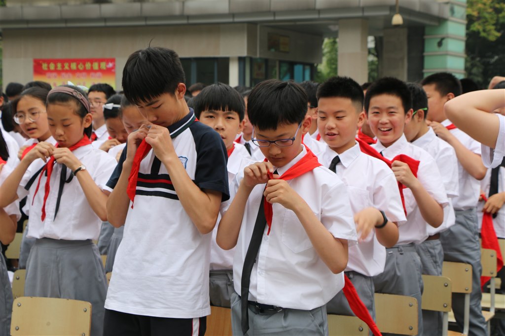 以梦为马,我们不负韶华。最后,在庄严队旗的见证下,全体少先队员郑重地摘下系在胸前多年的红领巾,珍藏起这被烈士鲜血染红的红领巾,珍藏起这段永恒的回忆。在这一刻,同学们更深刻地理解了红领巾的意义:告别少先队,是成长道路上的一个里程碑,是迈向青春的第一步,它意味着逐渐成熟,意味着更多责任,意味着自强不息,意味着展翅高飞!